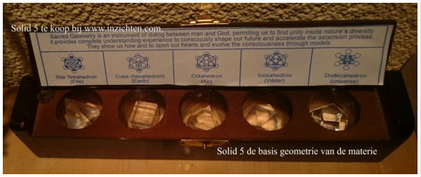 Al maanden zijn we bezig met de integratie van het multi-dimensionale energielichaam diep in het lichaam. Maar rondom de gedeeltelijke zonsverduistering van 6 januari kwam er voor wie daar aan toe was een volledige integratie op gang op het niveau van het DNA. (ervaring tijdens de online activatie&meditatie die ik organiseer iedere nieuwe en volle Maan.) Dit werd getoond doordat de geometrie van de Matrix (Metatronkubus/solid 5) en de geometrie van de eenheid (multi-dimensionaal geopende Volledige Flower of Life) één werden. De geometrie van de Matrix ligt aan de basis van alle materie. Deze Matrix geometrie wordt ook wel de solid 5 genoemd en deze bestaat uit de kubus, tetraëder, octaëder, ster-tetraëder, icosaëder (zie foto) en komen samen in de Metatronkubus.